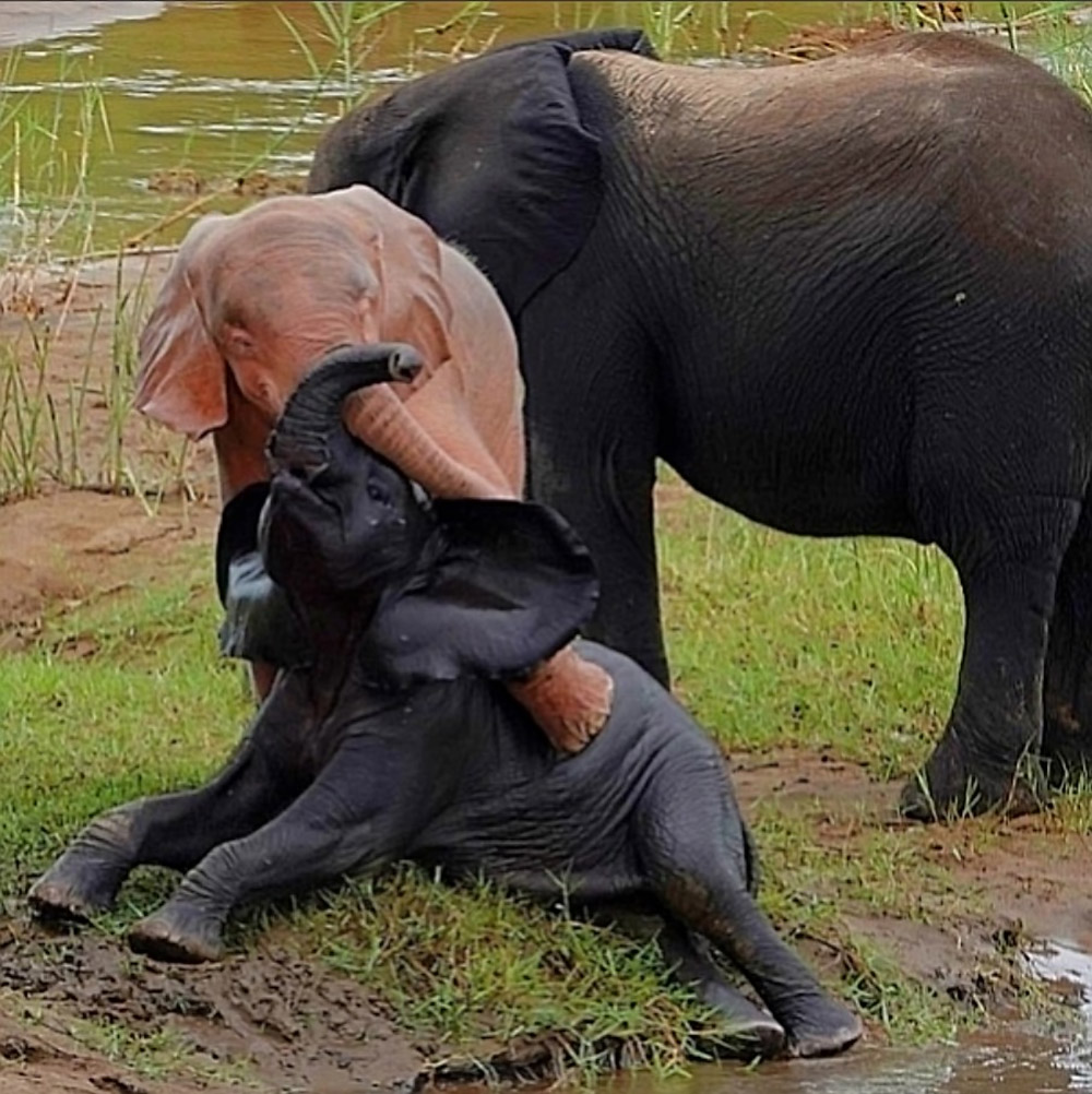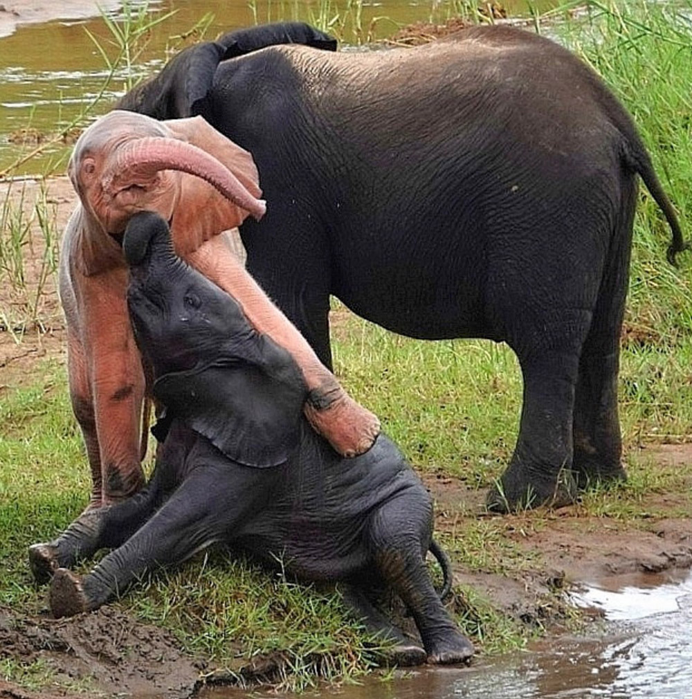 Το κακό είναι ότι πολλές φορές τα ζώα που παρουσιάζουν αυτές τις καταστάσεις (λευκισμό ή αλμπινισμό) συχνά απορρίπτονται από τα υπόλοιπα ζώα στη φύση. Ευτυχώς, αυτό το μικρό ελεφαντάκι φαινόταν χαρούμενο και αποδεκτό στην ομάδα του.