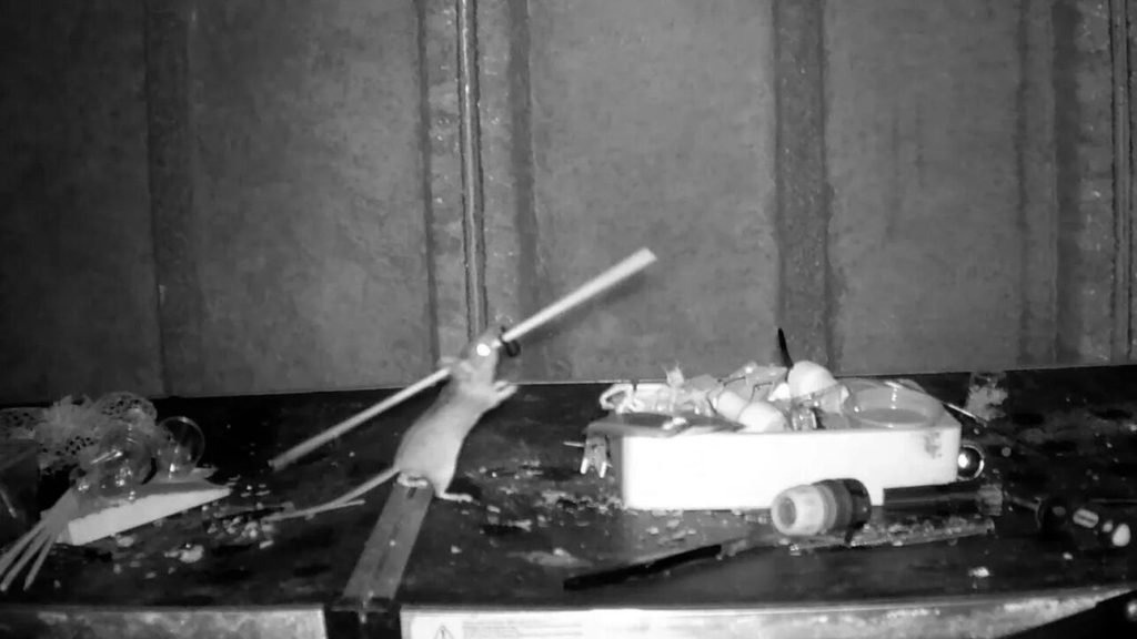 Στην αρχή, παρατήρησα ότι η τροφή που έβγαζα για τα πουλιά κατέληγε σε κάποια παλιά παπούτσια που φύλαγα στο υπόστεγο, οπότε έστησα μια κάμερα για να δω τι συμβαίνει. 99 φορές στις 100 το ποντίκι τακτοποιούσε τα πράγματα όλη τη νύχτα. Είναι πραγματικά απίστευτο που τακτοποιεί όλα τα πράγματα πίσω στο κουτί.