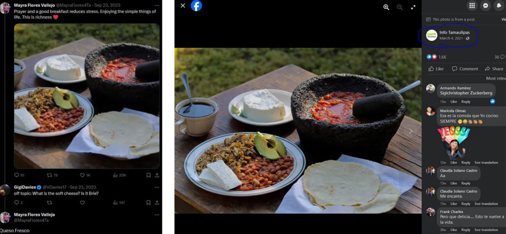 Ωστόσο, ένας χρήστης του X παρατήρησε ότι η ίδια φωτογραφία είχε αναρτηθεί σε μια σελίδα με όνομα “Visit Guyana” στο Facebook τον Μάρτιο του 2022. Επομένως, όχι μόνο έκλεψε τη φωτογραφία και τη χρησιμοποίησε ως δική της, αλλά και το φαγητό στη φωτογραφία δεν είναι καν μεξικάνικο όπως αναφέρει η πολιτικός. Από εδώ ξεκίνησαν όλα, δείτε: