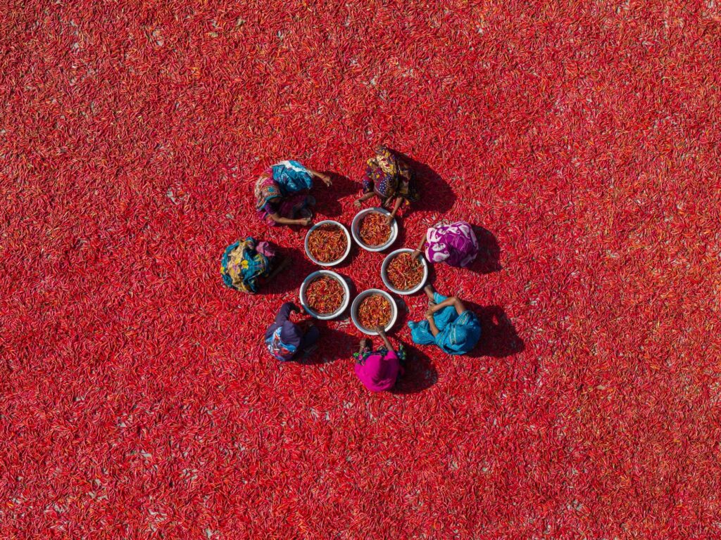 Μια φωτογραφία από εργάτριες σε εργοστάσιο τσίλι στο Μπαγκλαντές.