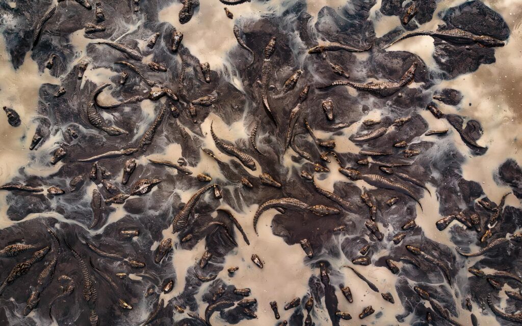Δεκάδες καιμάν ακινητοποιημένα σε μία λασπώδη λίμνη, περιμένουν την επιστροφή των βροχών στο αποκορύφωμα της ξηρασίας στο Pantanal.