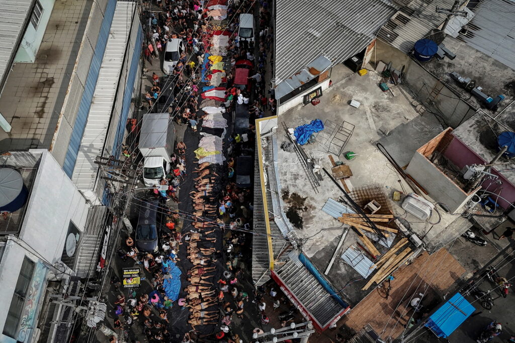 Αποτυπώνουν τη ζοφερή εικόνα μετά τη φονικότερη αστυνομική επιχείρηση στην ιστορία της Βραζιλίας — μια επιχείρηση που άφησε πίσω της 121 νεκρούς, ανάμεσά τους και τέσσερις αστυνομικούς.
