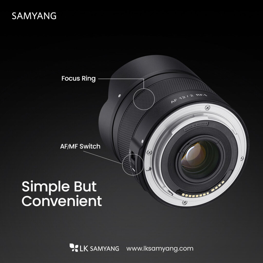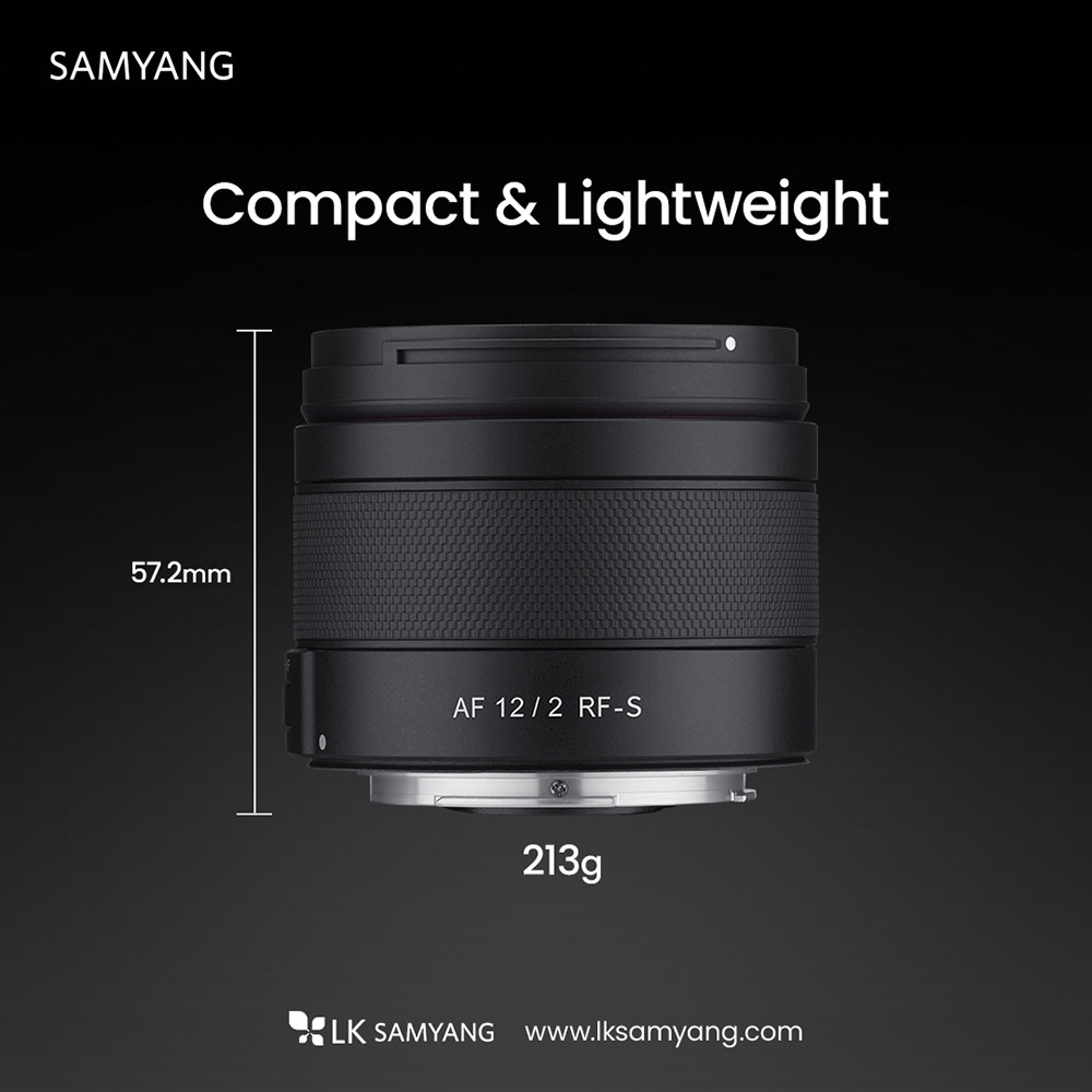 Νωρίτερα φέτος, η Canon πήρε τη (μεγάλη) απόφαση να επιτρέψει σε third-party κατασκευαστές να φτιάξουν φακούς με αυτόματη εστίαση για Canon RF mount. Έτσι, η Samyang ανακοίνωσε επίσημα τον νέο φακό 12mm f/2 για Canon RF (APS-C). Ζυγίζει 213 γραμμάρια και έχει διαστάσεις 70 x 57.2mm (διάμετρος x μήκος). Αποτελείται από 12 στοιχεία σε 10 ομάδες συμπεριλαμβανομένων 3 στοιχείων εξαιρετικά χαμηλής διασποράς, ενός υβριδικού ασφαιρικού στοιχείου και ενός ασφαιρικού στοιχείου για την καταπολέμηση των χρωματικών εκτροπών και των αντανακλάσεων.