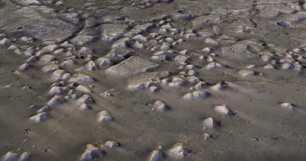 Δείτε την παρακάτω εικόνα που μελέτησαν οι επιστήμονες. Φαίνονται χιλιάδες τύμβοι και λόφοι οι οποίοι είναι διάσπαρτοι σε όλο το τοπίο του Άρη. Οι δομές αυτές προσφέρουν ακόμη περισσότερες αποδείξεις για το υγρό παρελθόν του πλανήτη.