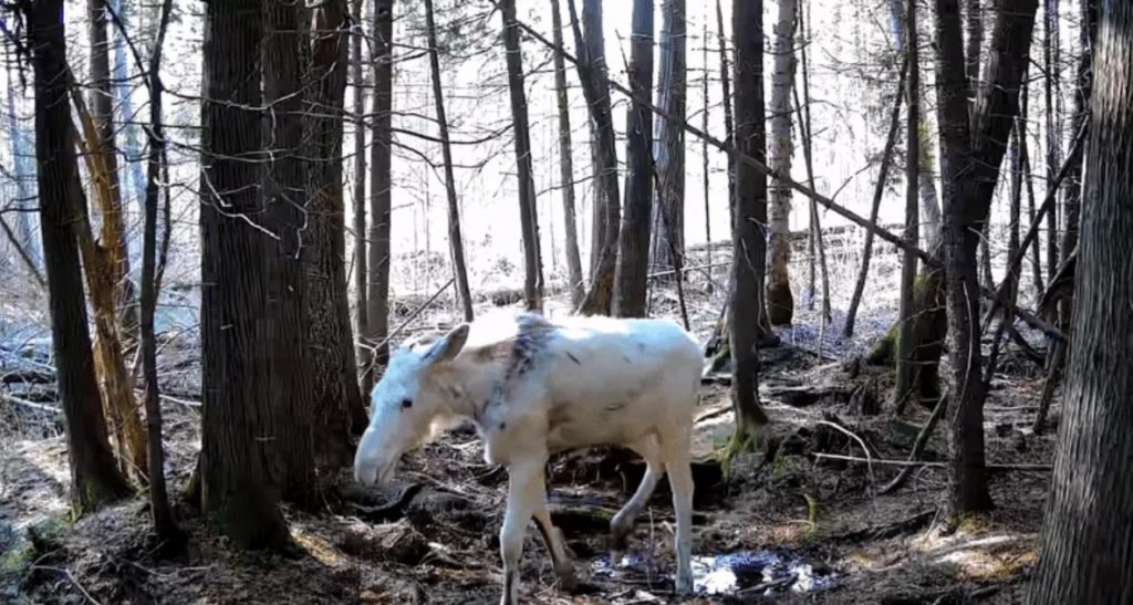 Ο φωτογράφος Mark Clement κατέγραψε μέσω trail κάμερας μια σπάνια λευκή άλκη, δυτικά του Timmins στο Οντάριο του Καναδά.