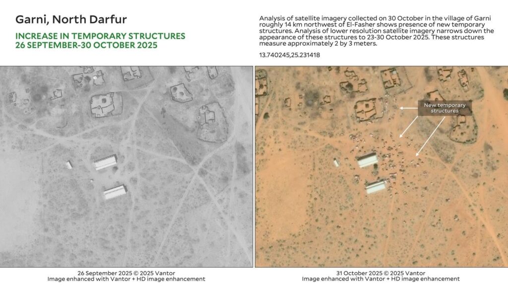 Το Humanitarian Research Lab της Σχολής Δημόσιας Υγείας του Yale ανέλυσε εικόνες πριν και μετά την πτώση της El-Fasher στα χέρια των παραστρατιωτικών του RSF.
