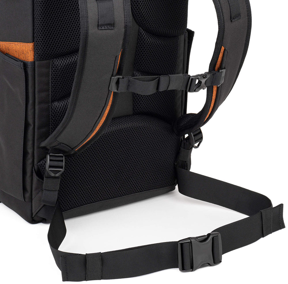 Είναι εξοπλισμένες επίσης με πλαϊνές τσέπες μαζί με πρόσθετους ιμάντες κλειδώματος για να τοποθετείτε μπουκάλια νερού ή τρίποδα. Οι ιμάντες του ώμου είναι μεγάλοι με ειδική επένδυση για άνετη εφαρμογή όπου φυσικά μπορούν να προσαρμοστούν σε διάφορες θέσεις όσο αφορά το ύψος. Το πίσω μέρος που εφαρμόζει στην πλάτη είναι επίσης ειδικά σχεδιασμένο με ανατομικό υλικό για άνετη χρήση χωρίς κούραση. Για έξτρα κράτημα και σταθερότητα, οι τσάντες διαθέτουν μπροστινό ιμάντα που κλειδώνει γύρω από τη μέση. Όλα τα φερμουάρ είναι υψηλής ποιότητας (ykk rc zippers) για να μη χαλάνε εύκολα μετά από παρατεταμένη χρήση, ενώ παρέχεται και ειδικό αδιάβροχο κάλυμμα που καλύπτει την τσάντα για προστασία του εξοπλισμού σας από τις δύσκολες καιρικές συνθήκες.