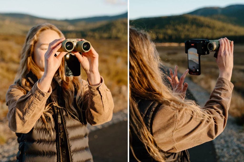 Πρόκειται για την ανανεωμένη έκδοση του Photo Rig Smartphone Adapter, που σας επιτρέπει να προσαρμόζετε το smartphone σας σε κιάλια. Είναι συμβατό με τα περισσότερα μοντέρνα τηλέφωνα ενω η εταιρία υπόσχεται βελτιωμένες δυνατότητες και απόδοση, συμπεριλαμβανομένου ενός νέου πλαισίου με άκαμπτα ελατήρια που διασφαλίζει ότι μπορείτε να ευθυγραμμίσετε πιο αποτελεσματικά την κάμερα του smartphone σας με τα κιάλια, κρατώντας το με ασφάλεια σε σταθερή θέση.
