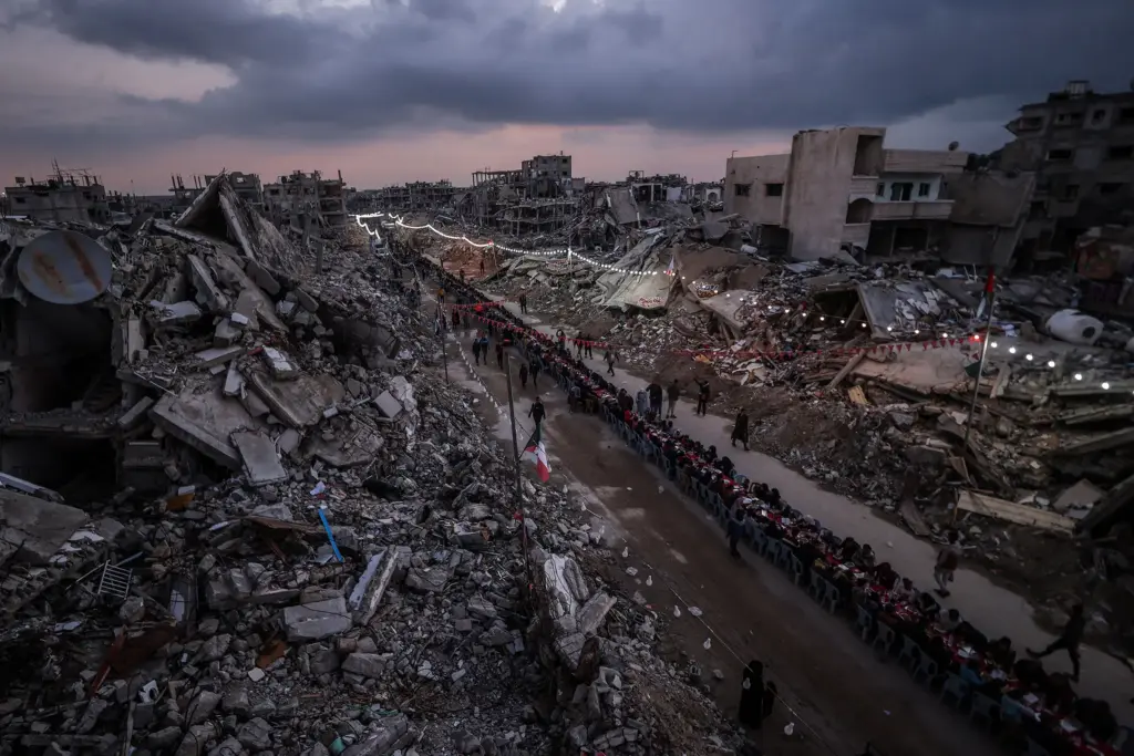 Εικόνα άρθρου: Ένα Παλαιστίνιο αγόρι διαβάζει πάνω στα ερείπια ενός σπιτιού, μετά από νυχτερινές ισραηλινές επιδρομές, στον προσφυγικό καταυλισμό Νουσεϊράτ, στο κεντρικό τμήμα της Λωρίδας της Γάζας, στις 29 Απριλίου. Eyad Baba—AFP/Getty Images