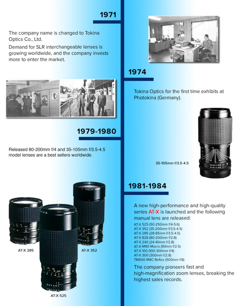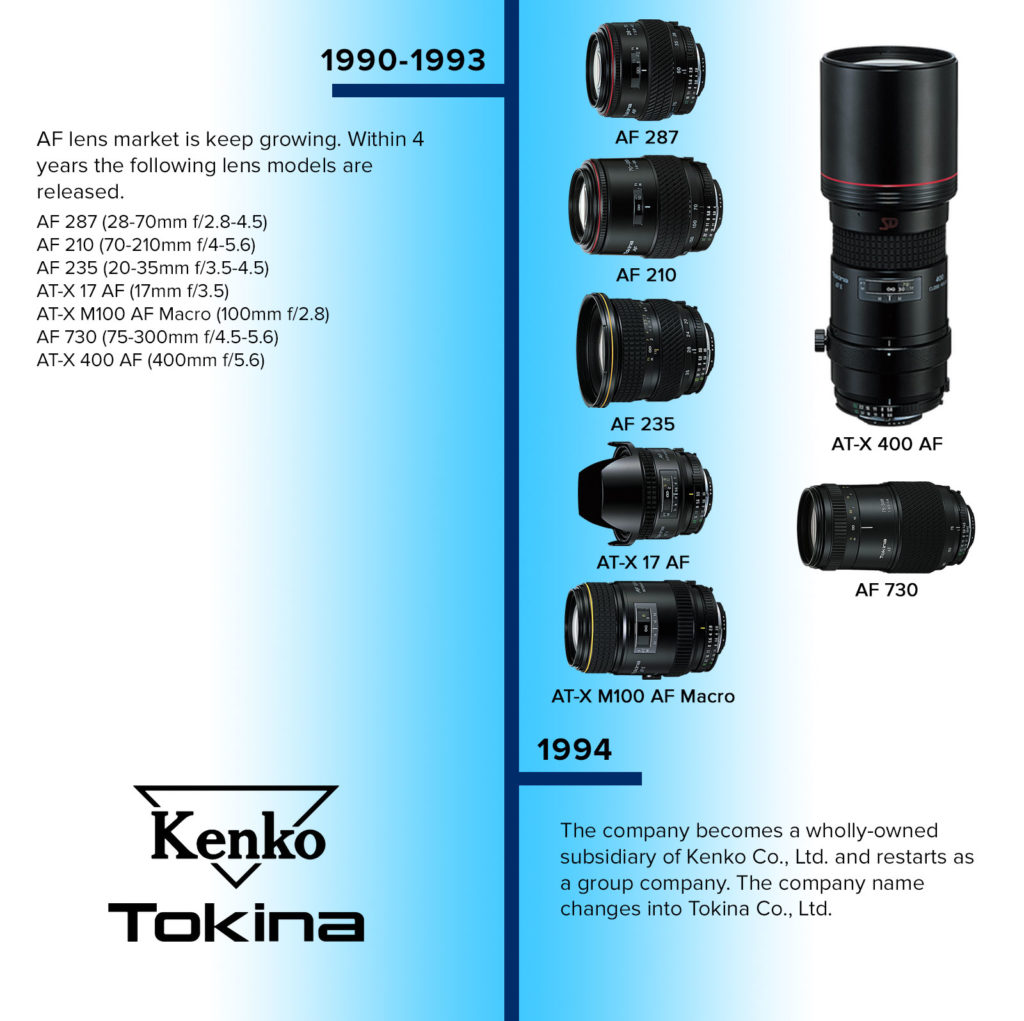 Και οι δύο προαναφερθέντες φακοί επανασχεδιάστηκαν και κυκλοφόρησαν στη σειρά AT-X PRO το 1994 και βοήθησαν περαιτέρω στον προσδιορισμό της μάρκας Tokina ως κατασκευαστή φακών ζουμ.