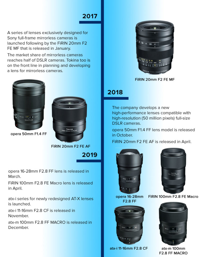 Η τεχνολογία που ανέπτυξε και έλαβε η Tokina κατά τη διάρκεια της μακράς περιόδου της ιστορίας της εξακολουθεί να εφαρμόζεται στα τρέχοντα μοντέλα και διατηρεί τη μάρκα Tokina σταθερά στην αγορά ως τον κορυφαίο κατασκευαστή ευρυγώνιων ζουμ φακών.