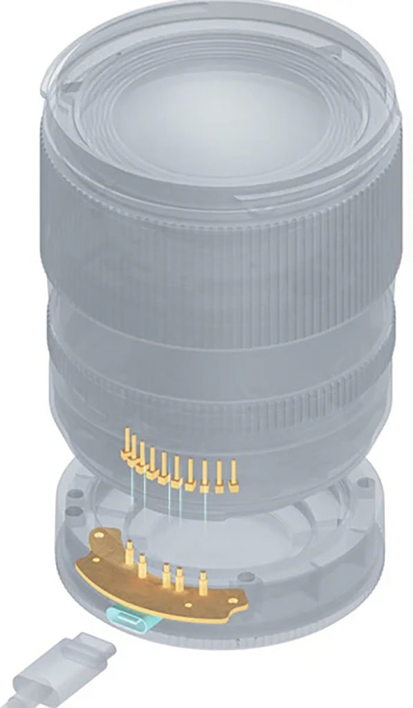 Να αναφέρουμε επίσης ότι το πίσω καπάκι του φακού (rear lens cap) διαθέτει θύρα USB-C για αναβάθμιση του firmware (ασυνήθιστος σχεδιασμός, καθότι έχουμε συνηθίσει να βρίσκεται στο κάτω μέρους του φακού η θύρα). Η συνδεσιμότητα είναι δυνατή όταν τοποθετήσετε το πίσω καπάκι στον φακό. Δείτε την παρακάτω εικόνα: