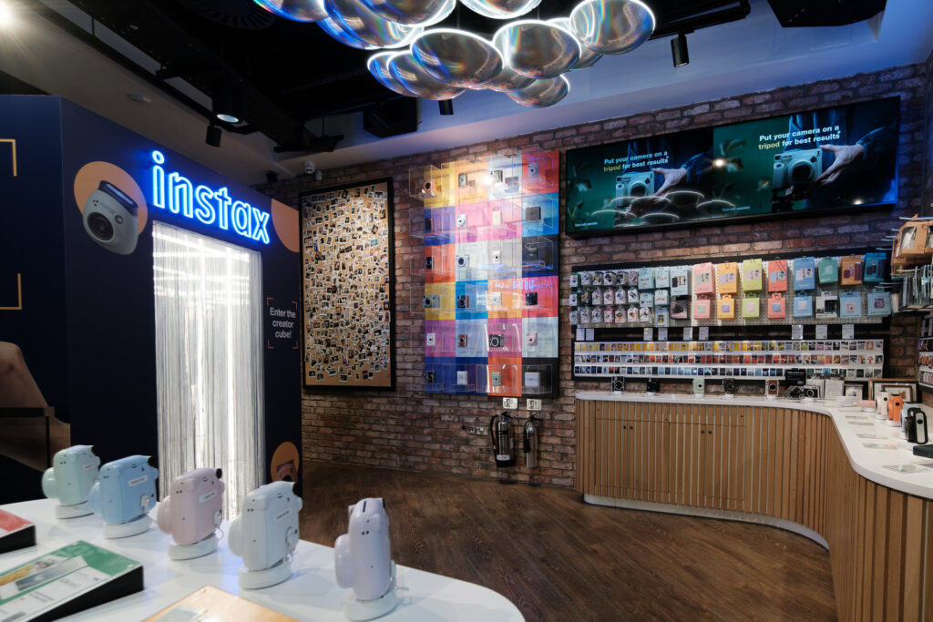 Το ισόγειο είναι αφιερωμένο στον πιο σύγχρονο εξοπλισμό της Fujifilm, παρουσιάζοντας τα πάντα, από τις κάμερες της σειράς X μέχρι τις Instax film cameras. Όλα είναι τοποθετημένα με τέτοιον τρόπο που σε προσκαλούν να δοκιμάσεις τις κάμερες, κάτι που πάντα εκτιμώ ως φωτογράφος.