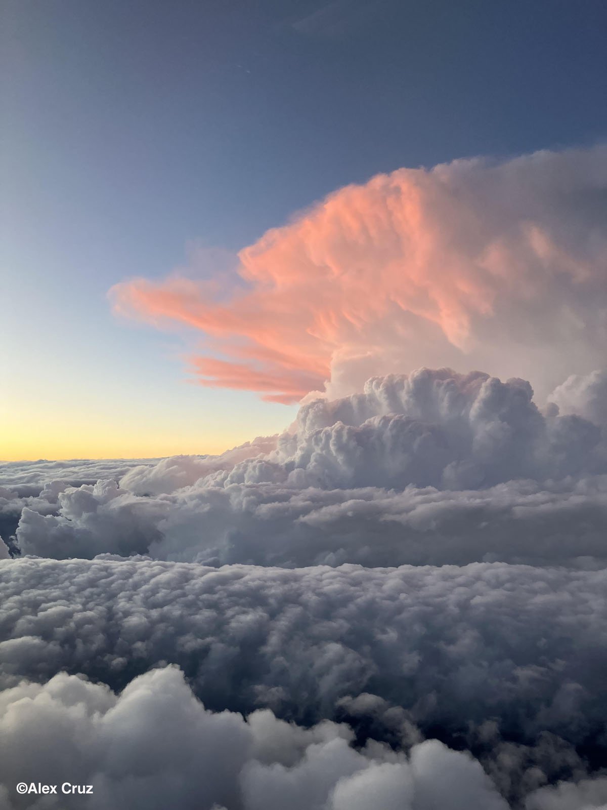 Ο Alex Cruz από τις Η.Π.Α. αναδείχθηκε Young Weather Photographer of the Year 2025 με το Eruption of the Sky, μια αεροφωτογραφία ενός γιγάντιου σωρειτομελανία από αεροσκάφος, που λούζεται σε αποχρώσεις ροζ και μπλε.