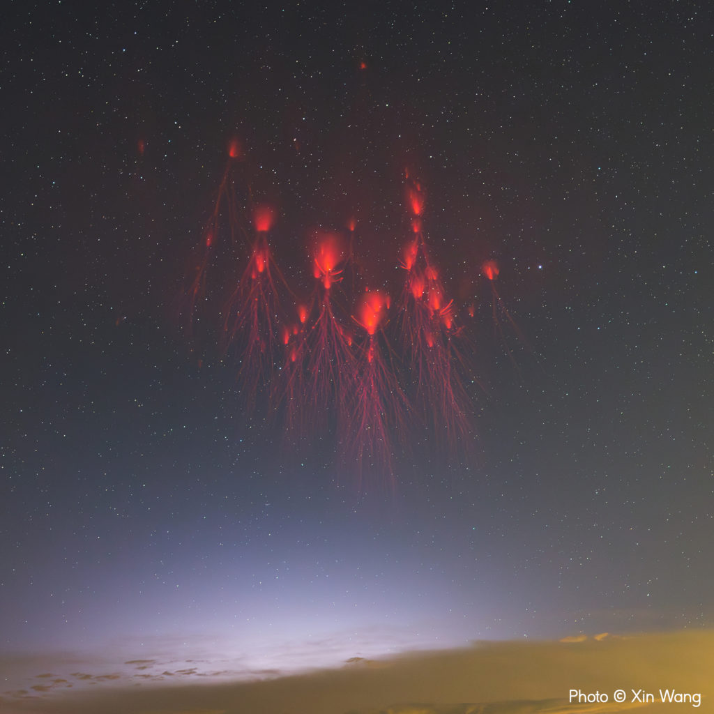 Ο φωτογράφος Wang Xin χρειάστηκε εξαιρετική υπομονή για να απαθανατίσει αυτό το εντυπωσιακό παράδειγμα κόκκινων Sprites. Στην περιοχή Chongming της Σαγκάης, τα κόκκινα Sprites, που μοιάζουν με τα εθέρια, παραμυθένια σπραιντ της λαογραφίας, είναι ιδιαίτερα δύσκολο να εντοπιστούν ή να φωτογραφηθούν. Η επιτροπή κρίσης επεσήμανε ότι είναι σπάνιο να δει κανείς μια εικόνα με τέτοιο εύρος και αριθμό Sprites.