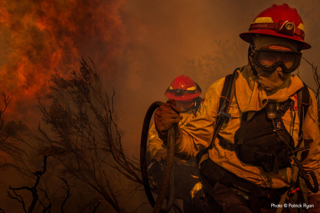 Για να καταγράψει αυτή την εικόνα, ο Patrick έκανε υπερβολικές προσπάθειες. Εκπαιδεύτηκε και ενσωματώθηκε με τους πυροσβέστες, συμμετέχοντας στην πρώτη γραμμή για να “καταγράψει μια ειλικρινή άποψη του ακραίου κόσμου” στον οποίο επιχειρούν. Αυτή η φωτογραφία τραβήχτηκε καθώς η φωτιά ξέφυγε από τον έλεγχο, αναγκάζοντας τους πυροσβέστες να αποχωρήσουν.