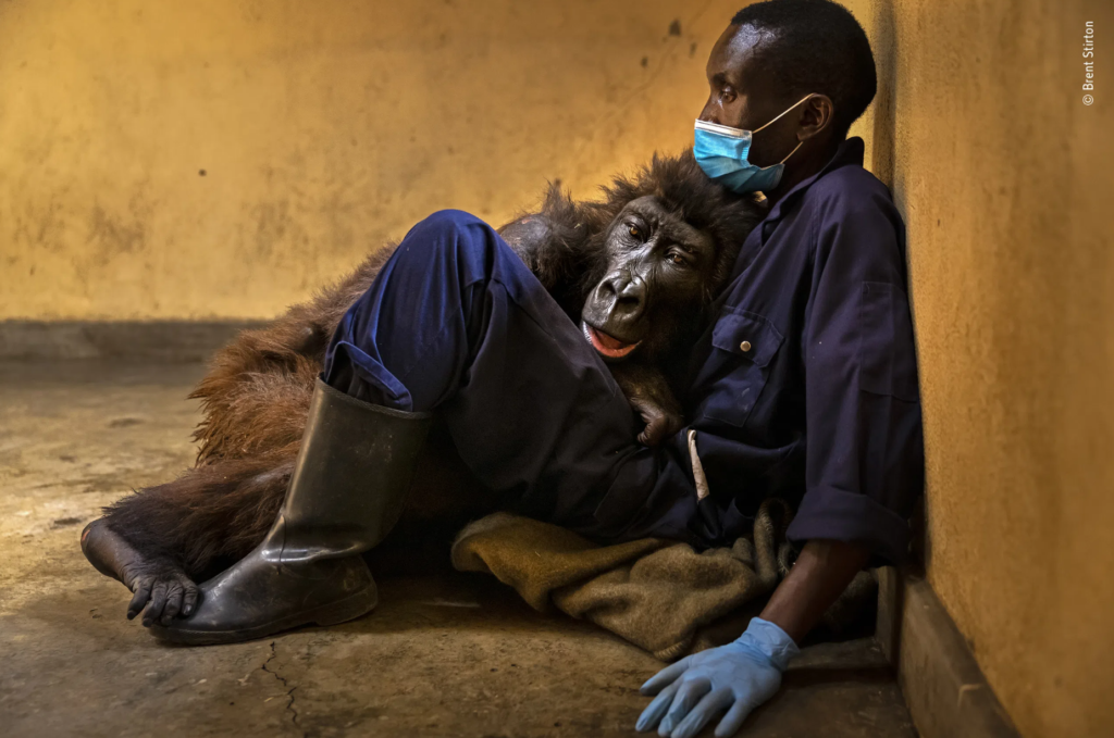 Ο Brent Stirton (Νότια Αφρική) μοιράζεται το τελευταίο κεφάλαιο της ιστορίας ενός πολυαγαπημένου γορίλα του βουνού. Ο Brent φωτογράφισε τη διάσωση της Ndakasi όταν ήταν μόλις δύο μηνών μετά τη βάναυση δολοφονία της ομάδας της από μια ισχυρή μαφία άνθρακα το 2007. Εδώ απομνημόνευσε το θάνατο της καθώς βρισκόταν στην αγκαλιά διασώστη και φροντιστή της για 13 χρόνια, του δασοφύλακα Andre Bauma.