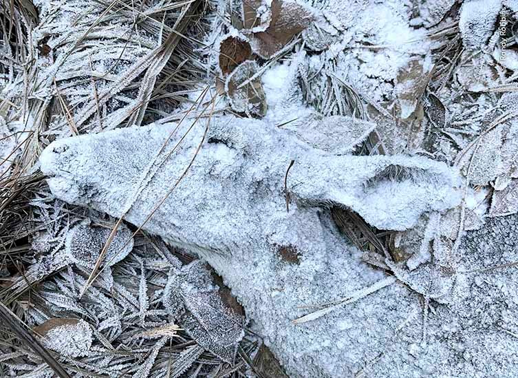 Μια κοντινή φωτογραφία που δείχνει το κεφάλι ενός νεκρού ελαφιού. Είναι καλυμμένο με λαμπερό λευκό πάγο, ο οποίος καλύπτει το τρίχωμά του και τα φύλλα πάνω στα οποία είναι ξαπλωμένο, δίνοντάς του μια απόκοσμη εμφάνιση. Τα τελευταία χρόνια, ο Randy παρακολουθούσε και φωτογράφιζε αυτό το ελάφι καθώς μεγάλωνε τα μικρά του στο κτήμα του στην Καλιφόρνια. Στη συνέχεια, ενώ έκανε πεζοπορία μια μέρα του Δεκεμβρίου, συνάντησε το σώμα του στο χιόνι και τον πάγο. Με τίποτα περισσότερο από την κάμερα του τηλεφώνου του, ο Randy τράβηξε αυτή τη φωτογραφία ως υπενθύμιση της ευθραυστότητας της ζωής και του «μεγάλου σχεδίου όλων αυτών».