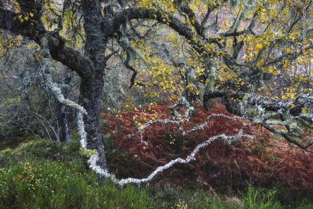 Ο Fortunato επισκέπτεται συχνά τα αρχαία πευκοδάση του Glen Affric μόνος του, για να χαθεί στην περίπλοκη, χαοτική, διαχρονική ομορφιά του. Τα ωχρά λειχήνια “γέροντα” υποδηλώνουν ότι η περιοχή έχει χαμηλή ατμοσφαιρική ρύπανση.
