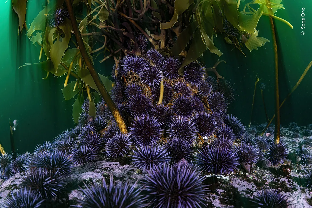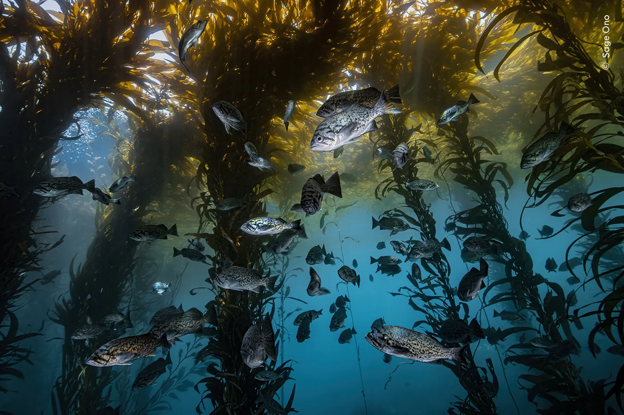 Ο Sage Ono (ΗΠΑ) εξερευνά τη πλούσια ζωή γύρω από τα δάση γιγάντιων φυκιών στην Εθνική Θαλάσσια Προστατευόμενη Περιοχή του Μοντερέι Μπέι.