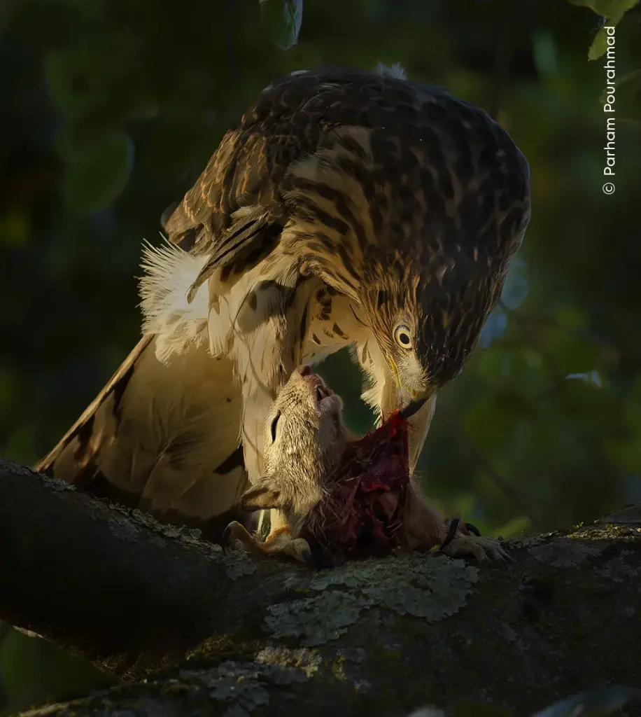 Αυτά τα προσαρμοσμένα πουλιά ζουν επίσης σε αστικά περιβάλλοντα, όπου φωλιάζουν σε ψηλά δέντρα και κυνηγούν μικρότερα πουλιά που προσελκύονται από τα ταΐστρα των πουλιών.