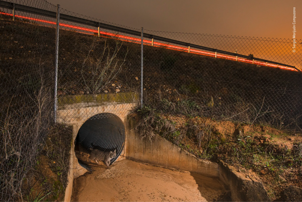Καθώς αυξάνονται οι αστικές περιοχές, όπως η Jaen στην Ισπανία, αυξάνονται οι απειλές για την άγρια ζωή και τα Iberian lynx γίνονται θύματα τροχαίων ατυχημάτων καθώς επιδιώκουν επίσης να επεκτείνουν τις δικές τους περιοχές. Το 2019, πάνω από 34 άτομα του είδους πατήθηκαν από αυτοκίνητα και τρεις μέρες πριν ο Sergio βγάλει αυτή τη φωτογραφία, ένα θυληκό δύο ετών έχασε τη ζωή του όχι μακριά από αυτό το σημείο. Για την καταπολέμηση της θνησιμότητας στους δρόμους, οι βελτιώσεις στην περίφραξη και η κατασκευή υπόγειων σηράγγων είναι δύο αποδεδειγμένες λύσεις και αποτελούν τη σωτηρία για πολλά άλλα πλάσματα.