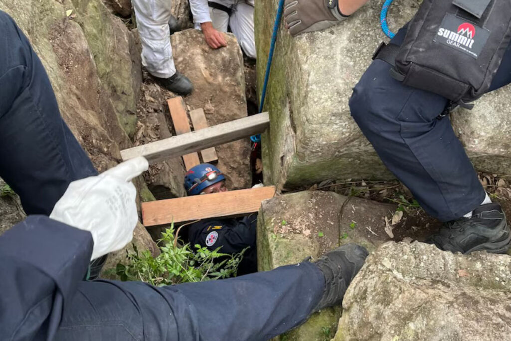 Μια γυναίκα της έπεσε το τηλέφωνο ενώ έβγαζε φωτογραφίες και στην προσπάθεια της να το πιάσει παγιδεύτηκε ανάμεσα σε δύο βράχους.